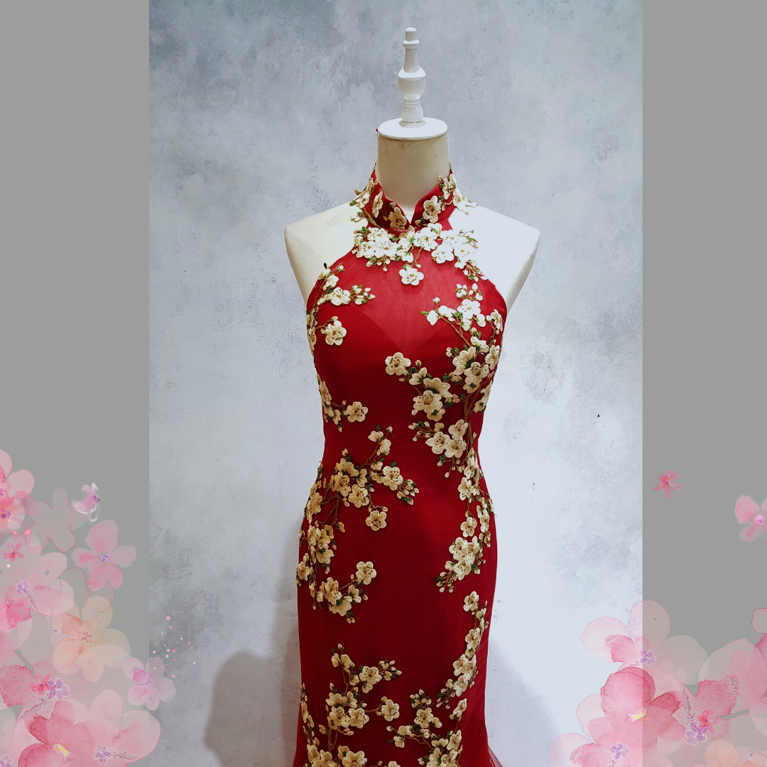 219EL01E04 Ray Cheongsam Red Crane Halter 10 Oriental Cheong Sam Qi Pao rental Malaysia Kuala Lumpur Petaling Jaya