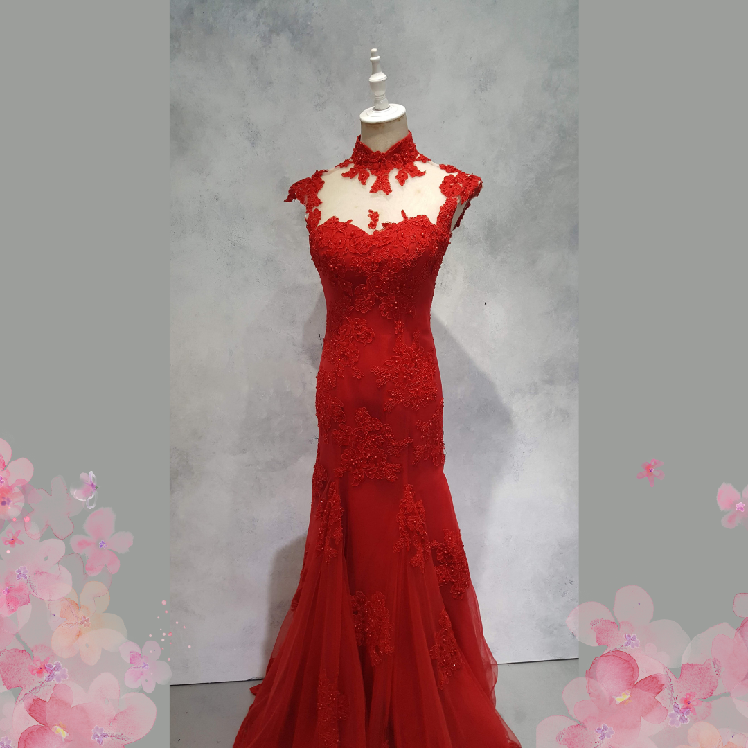 Evening Dress 73TYE01 Red Oriental Collar Trumpet  18 Oriental Cheong Sam Qi Pao rental Malaysia Kuala Lumpur Petaling Jaya