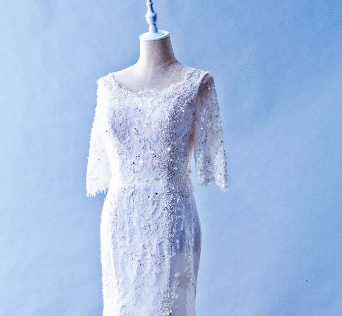 Designer wedding Gown S1506WL01 LL WL Long Sleeves Trumpet Mermaid French Lace back zip 1