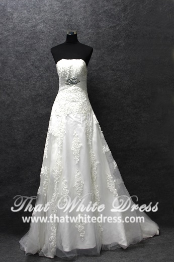 401W022 MR A Line Lace Long Waist Crystal Bust Wedding Dress Rental Kuala Lumpur