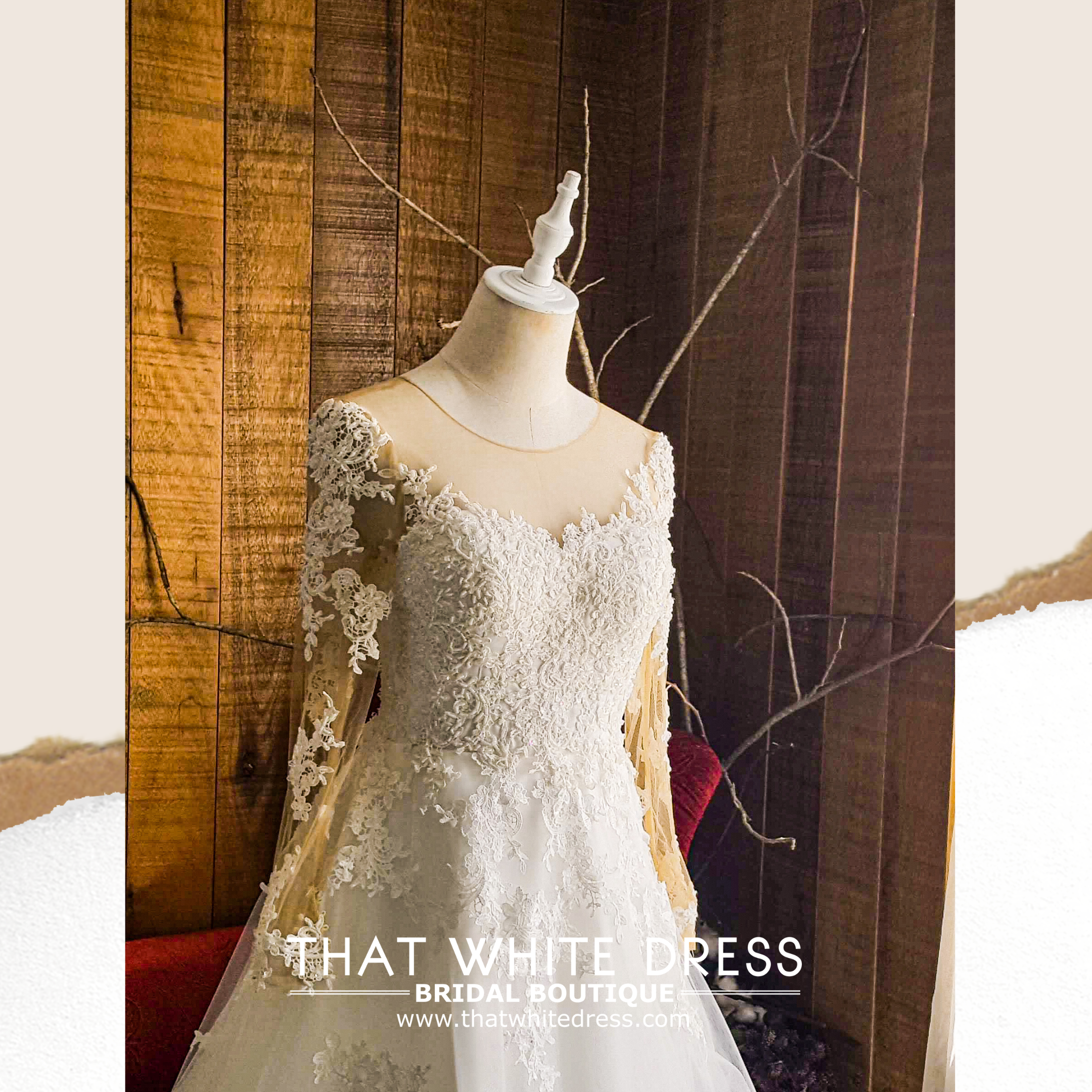 910LLW05 Arla Long Sleeves boat neck A line Princess  Bride Wedding Dress Designer Premium White Rental Kuala Lumpur