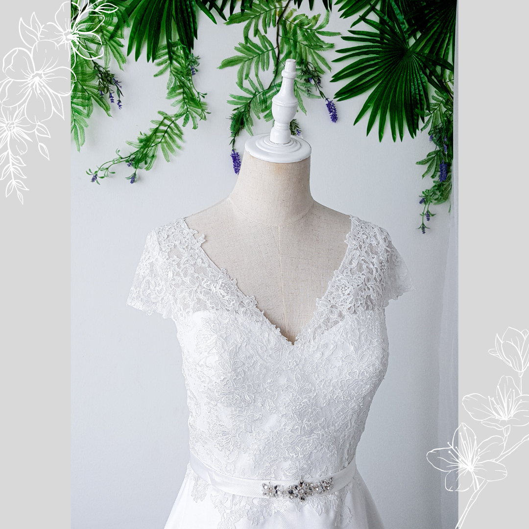 808BYWL01 Plus Latifa Cap Lace sleeves V neck A line Mikado Silk