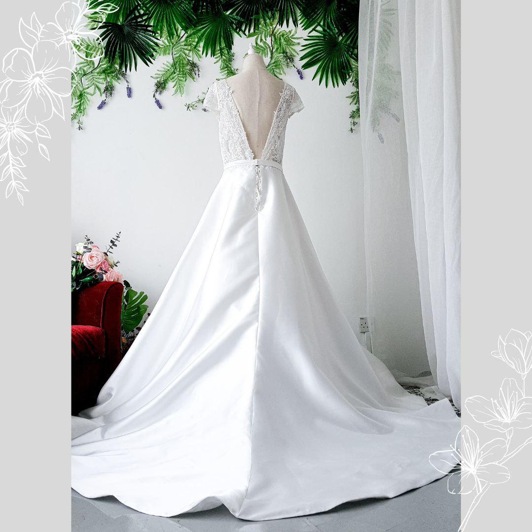 808BYWL01 Plus Latifa Cap Lace sleeves V neck A line Mikado Silk Bridal Dress Designer Malaysia rental Pengantin
