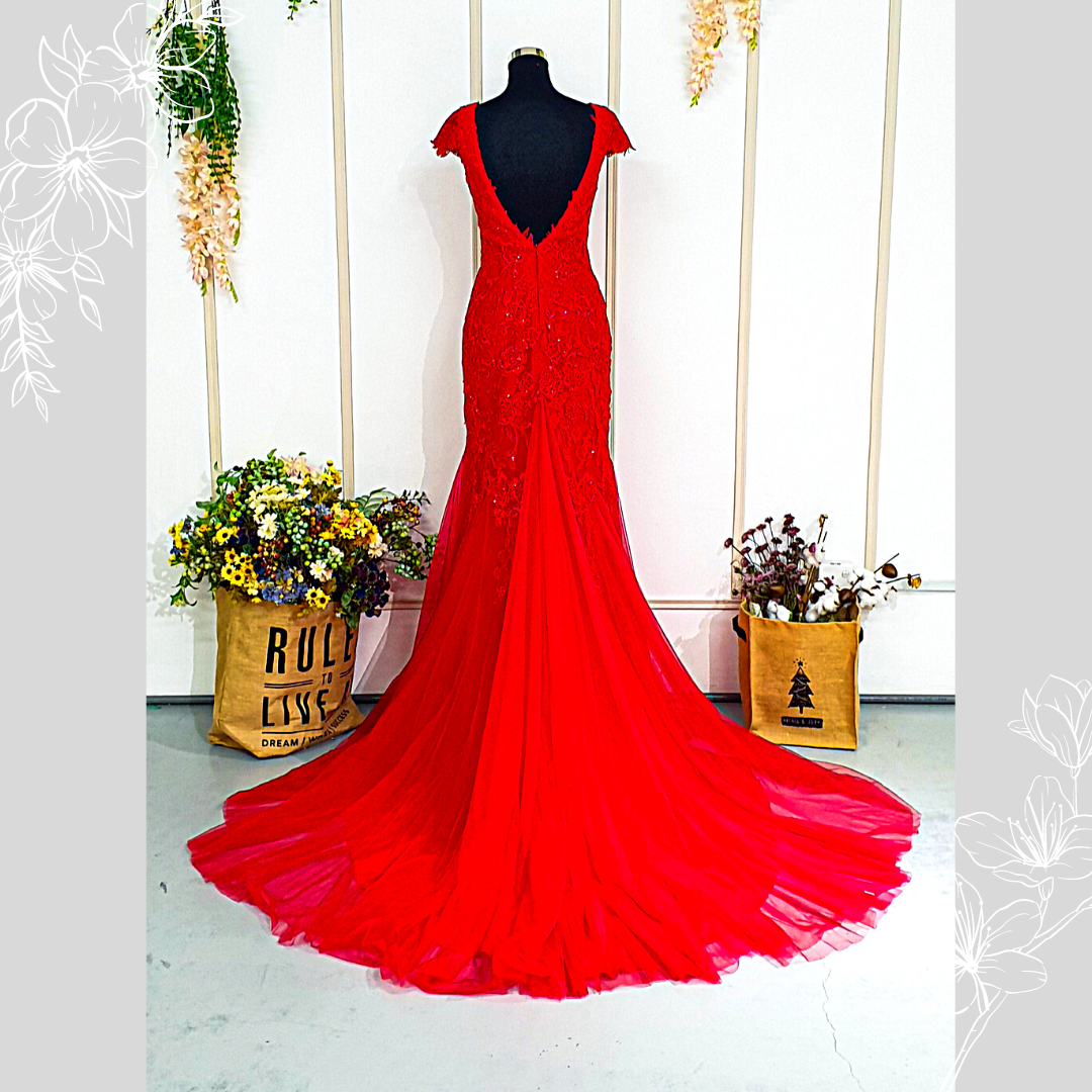 202BYE01 Verona Red Cap Sleeves V neck Trumpet evening dress rental wedding reception malaysia sewa