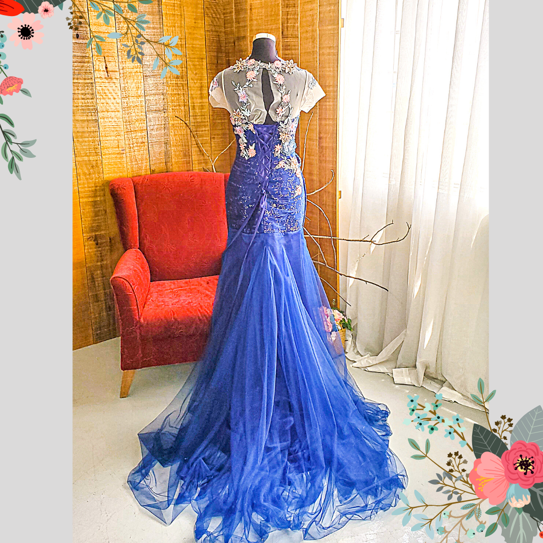 Evening Dress 508Ev08 TY Navy Blue Trumpet Sweet Heart Oriental CheongSam Qi Pao
