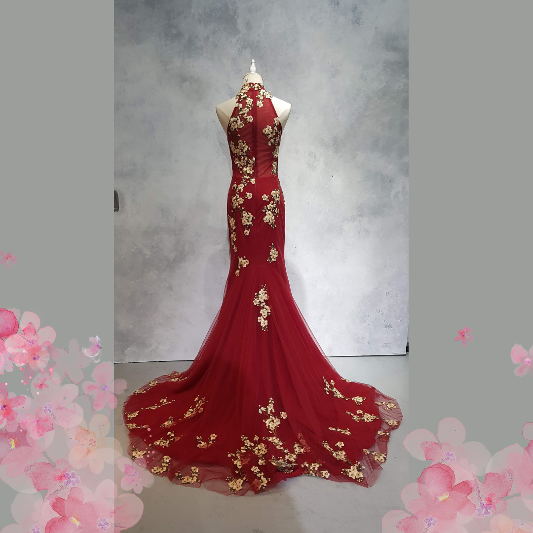219EL01E04 Ray Cheongsam Red Crane Halter 10 Oriental Cheong Sam Qi Pao rental Malaysia Kuala Lumpur Petaling Jaya