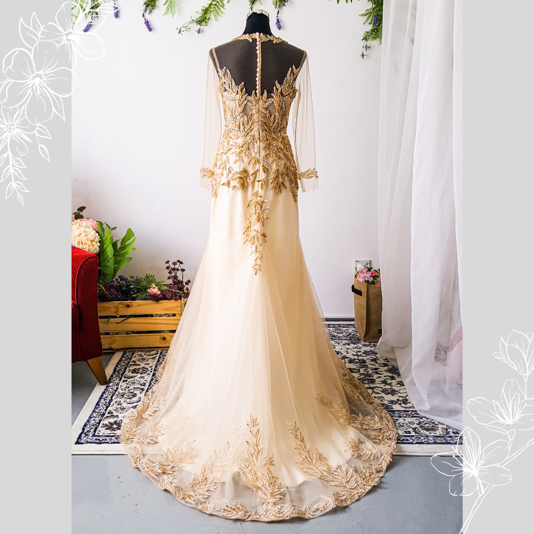 Evening Dress 812LLEL01 Shirley Gold long sleeves sheath gold leaves a Plus size Event Reception Dinner Dress rental Malaysia Pengantin Kahwin