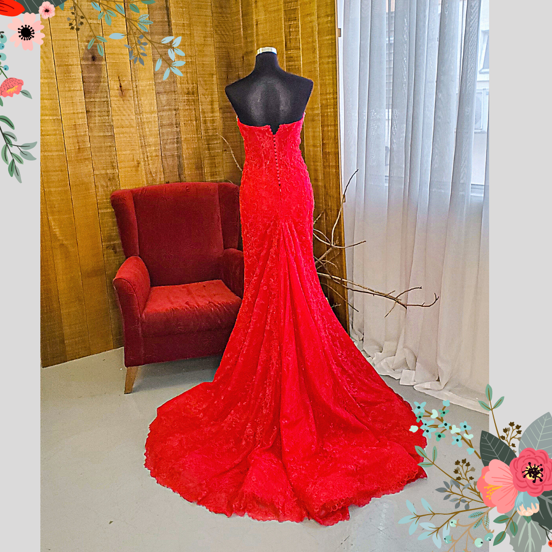 Evening Dress CC610E01 Red Sweet Heart Trumpet Pronovias a Swarovski Crystal Malaysia wedding reception rental