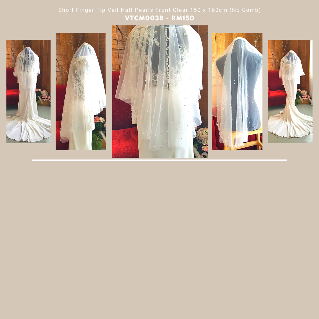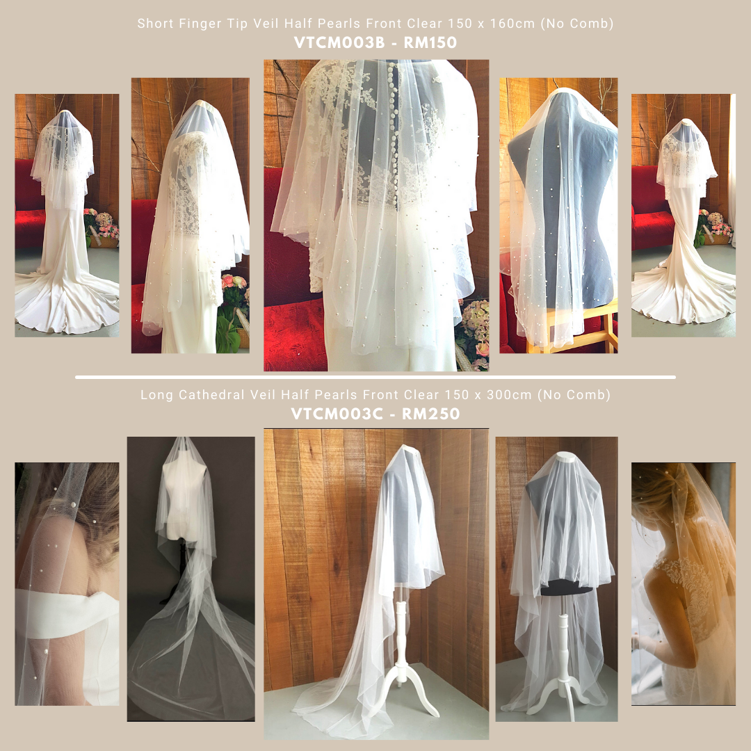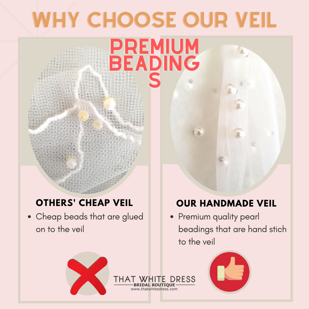 VTCMa003 TWD Premium Bride Wedding Veil Pearl Short Soft Tulle Net Front Clear Back Full Pearl no Comb/Veil Tudung Pengantin Nikah Sanding