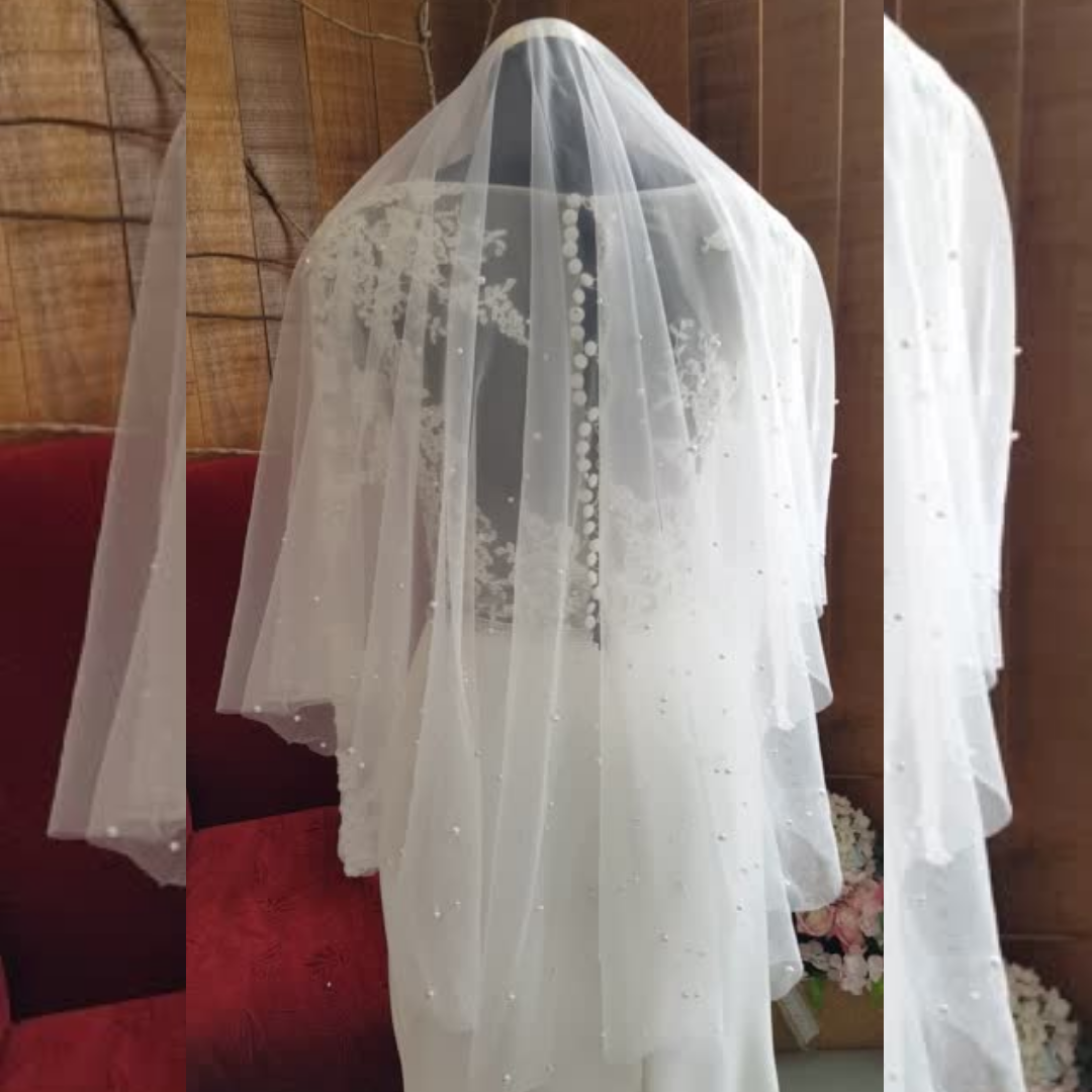 Bead work: Pearl beading at the back part of the veil. Front part has no beadings