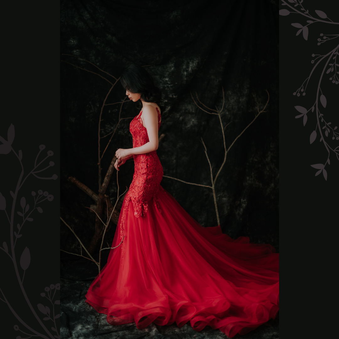 910LLW04 Winona Red Spag strap deep V baroque trumpet 2 Bride Wedding Event Reception Dinner Dress rental Malaysia