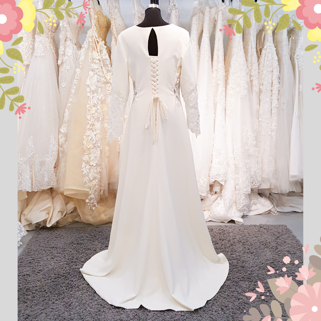 Long Sleeves designs suitable for Muslimah Bride/ Hijab Bride are available.