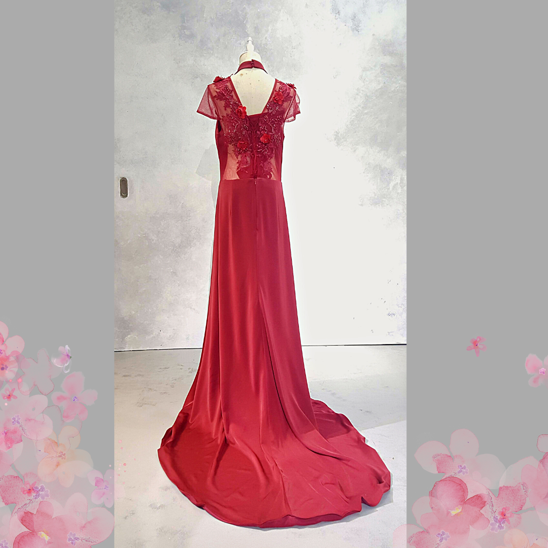 2210EL06EL02 Maida Plus Cheongsam Red Floral Oriental Cheong Sam Qi Pao rental Malaysia Kuala Lumpur Petaling Jaya Evening Dress