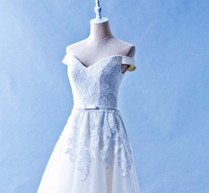 Designer wedding Gown S1502W16 XJ Off Shoulder A line Grey Belt