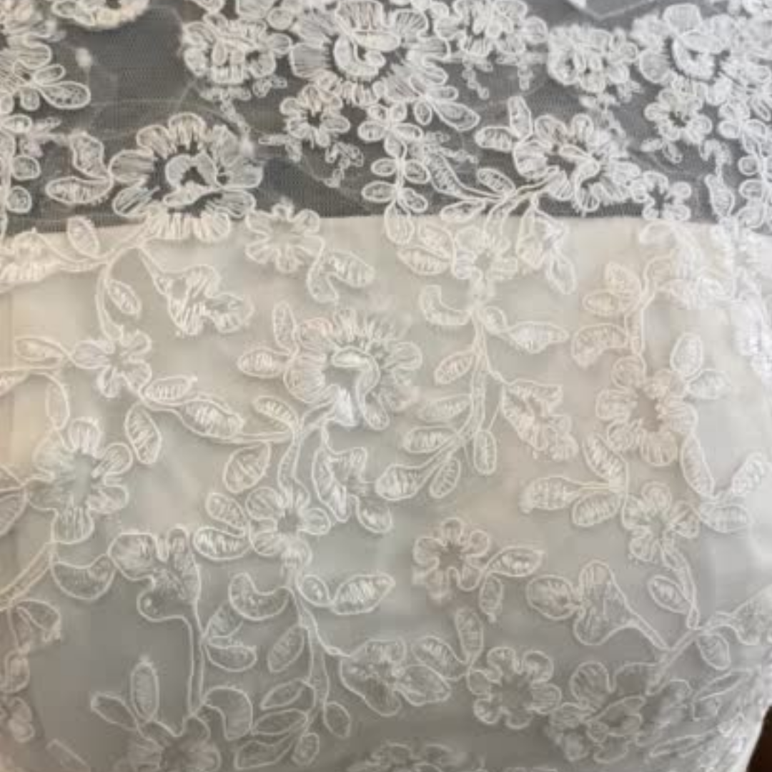 Featuring beautiful French Corded Alencon lace and lined in a soft layer of satin lining.