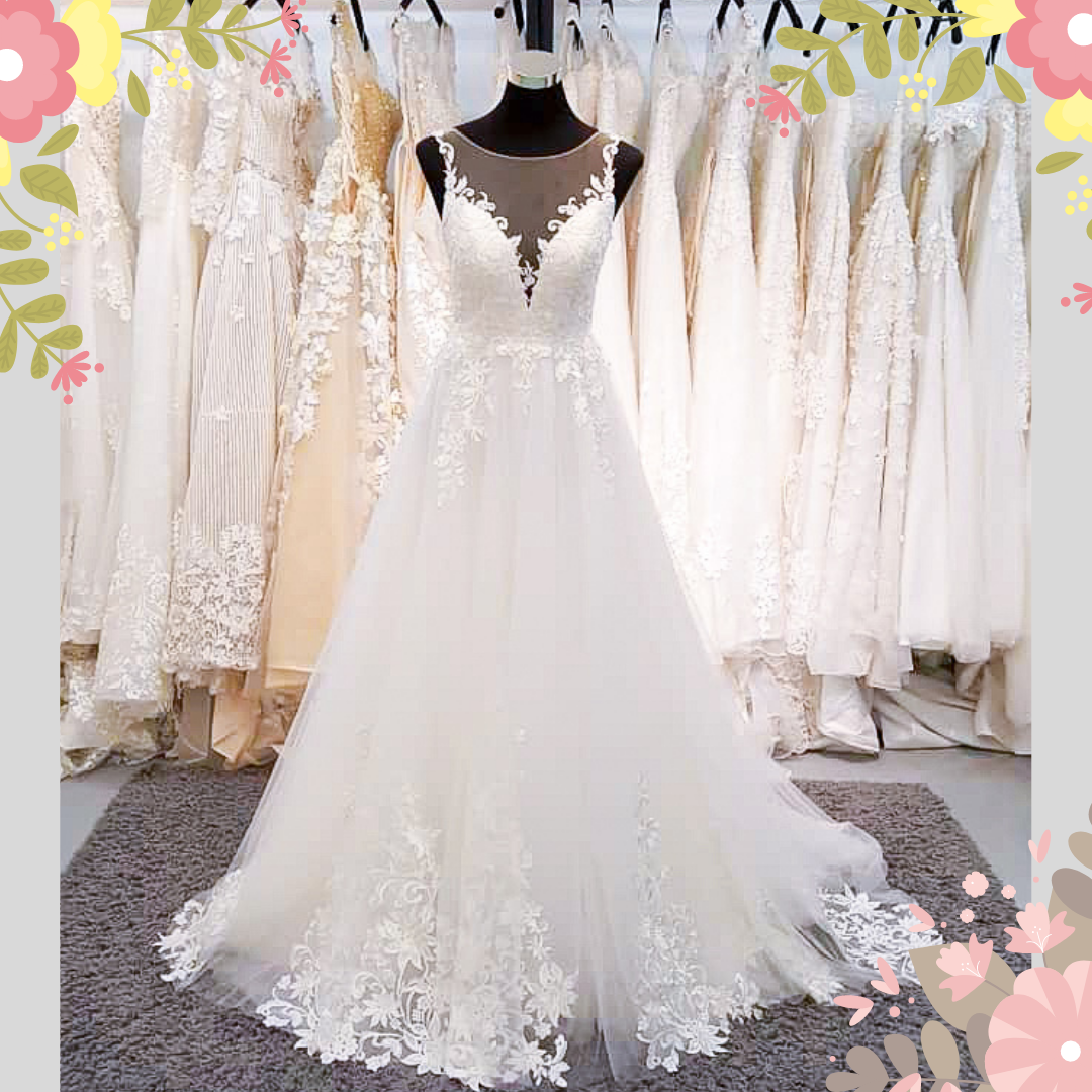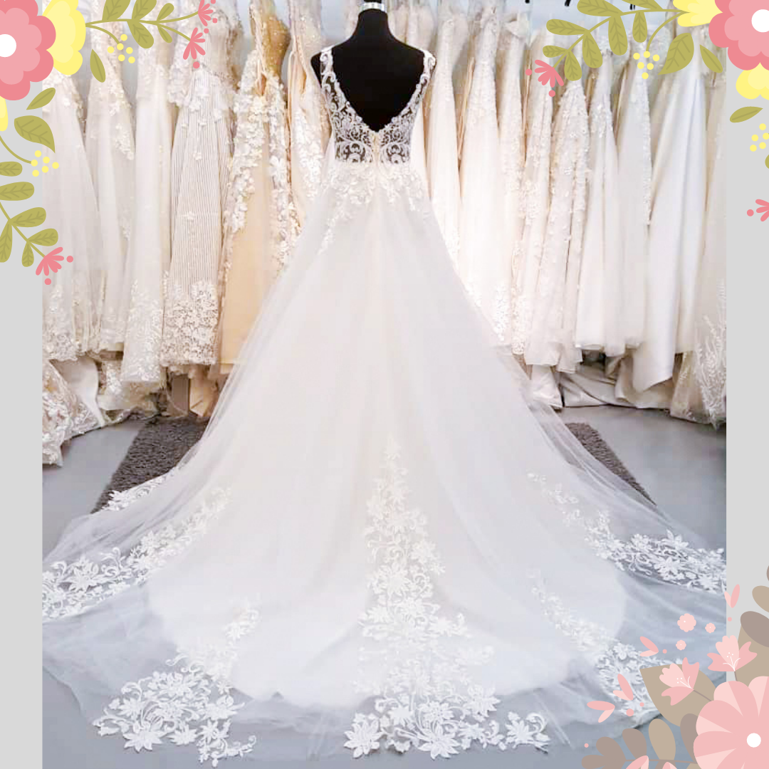 910BY05W02 Barrie Strap V illusion neck A line lace train 1 Petite Bride Malaysia, Wedding Ballgown rental Malaysia, Bridal Dress Rental Malay Kuala Lumpur Rental,