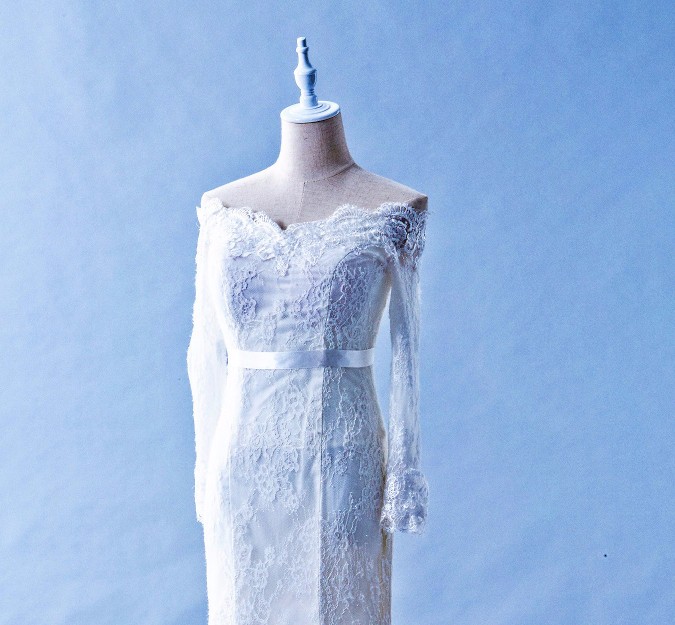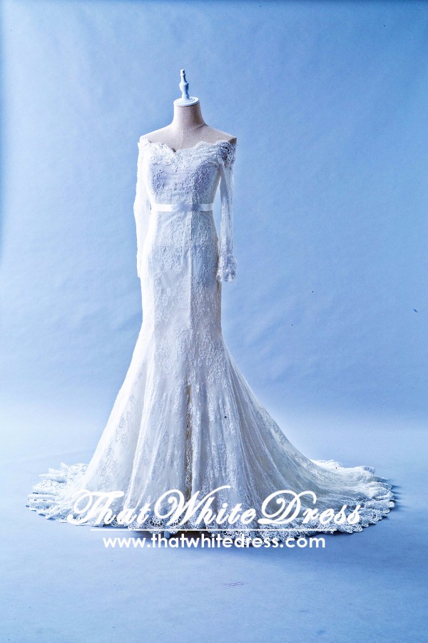 Wedding Dress Style: Off shoulder with long sleeves lace sleeves