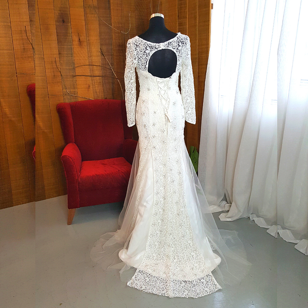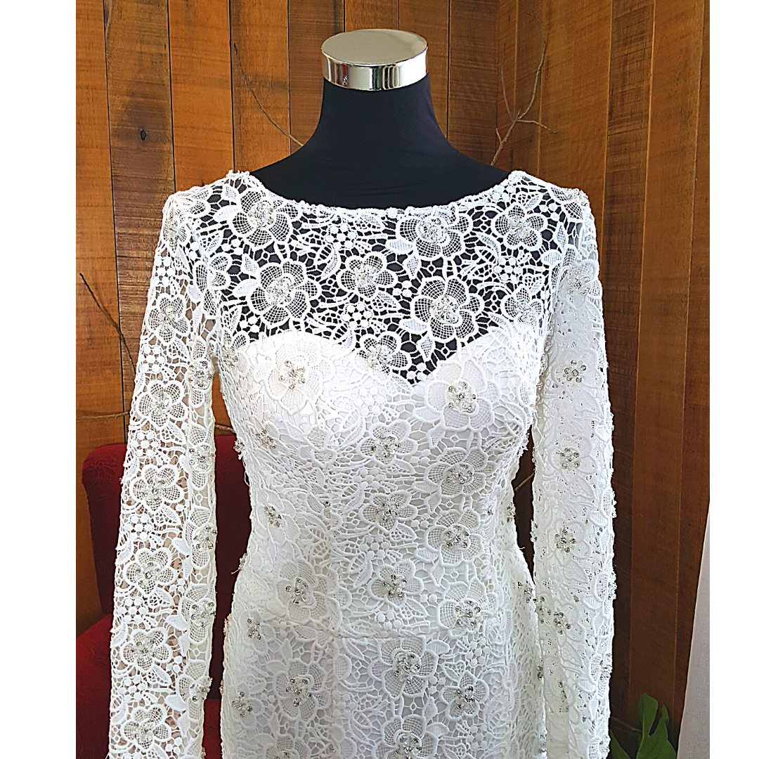 Full French Guipure Lace couture design in long sleeves design.