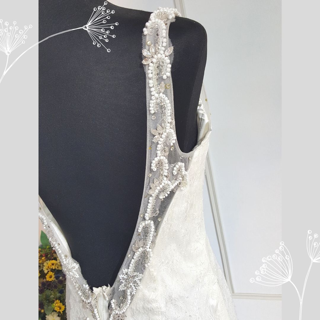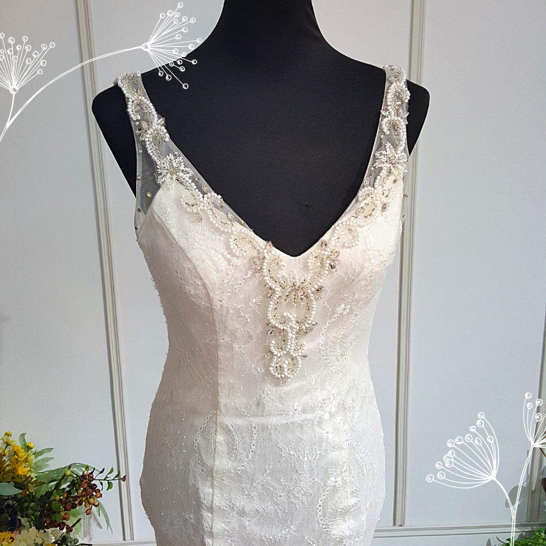 Featuring a beautiful full lace train that is stunning in photoshoot!