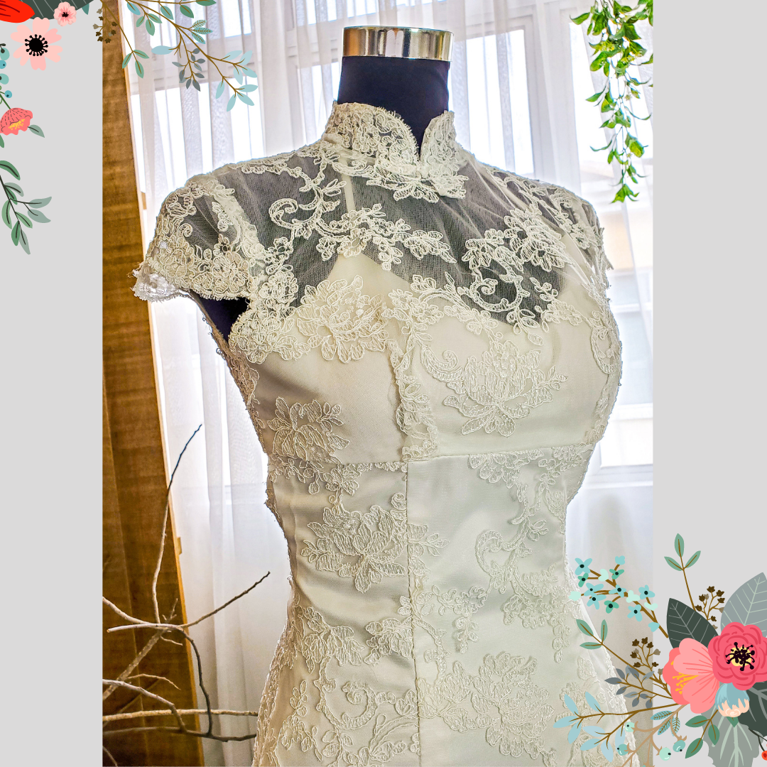 405W003 Mermaid Oriental Cheongsam White lace Wedding qi pao malaysia