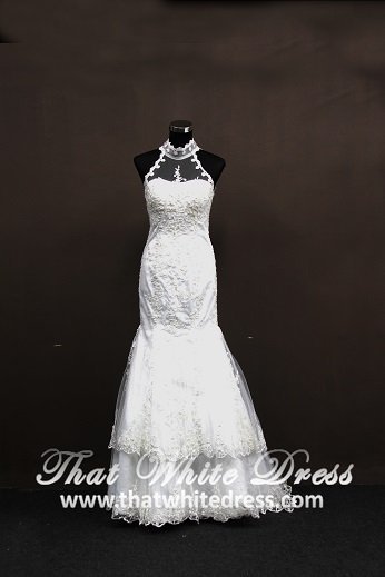 305W010 AL Trumpet Halter Lace Oriental collar Wedding Dress Designer Malaysia