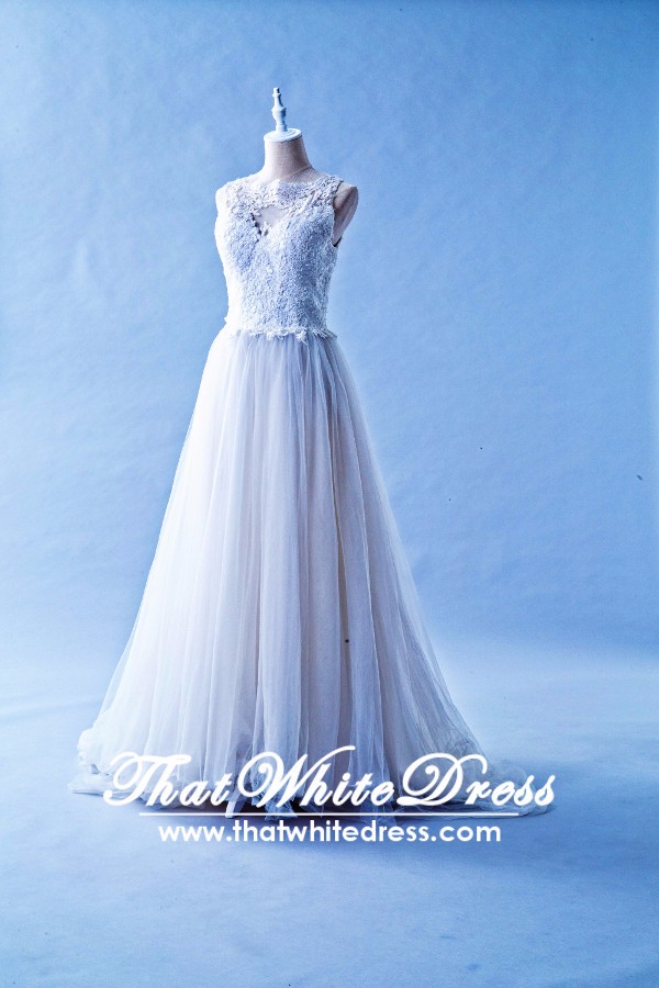 401W023 MR Illusioned Lace neckline Princess Wedding Dress Malaysia