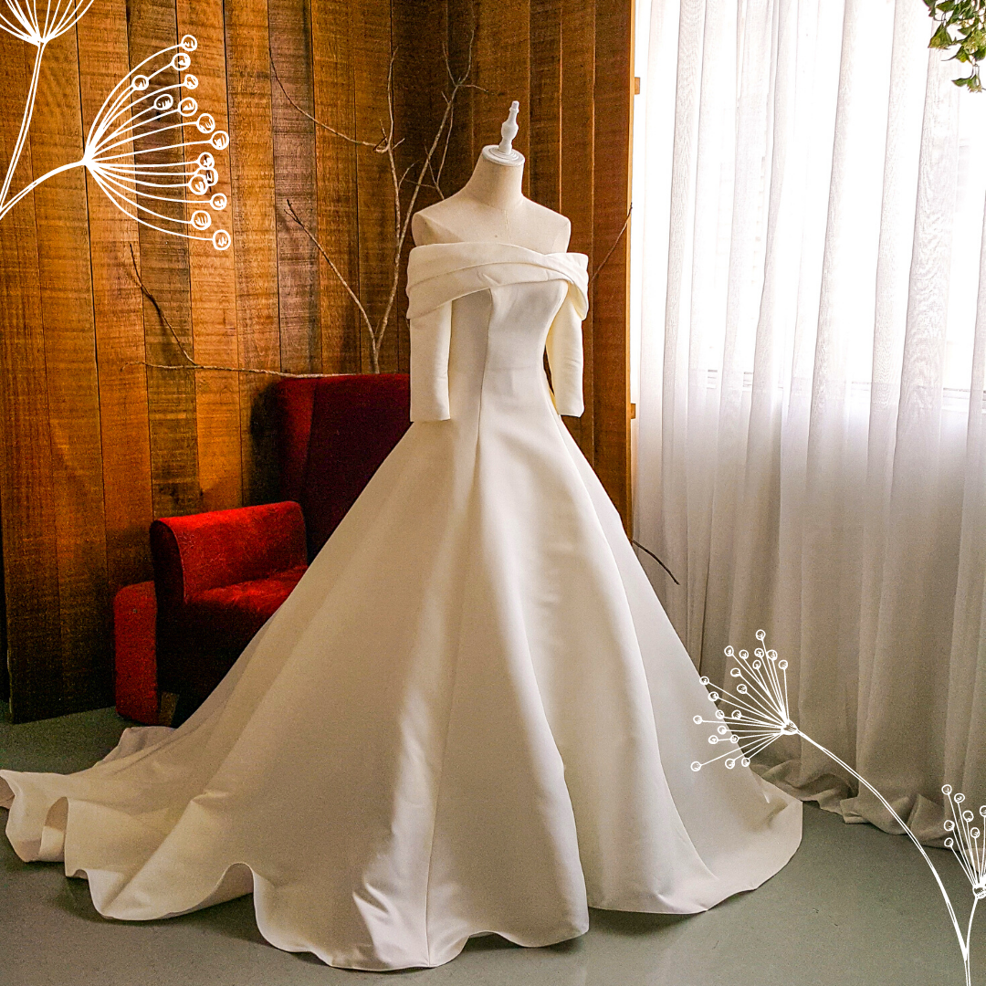 203BYW03 Saleena Off shoulder Long Sleeves Duchess Satin Princess a Bride Wedding Dress Designer Premium White Rental Kuala Lumpur