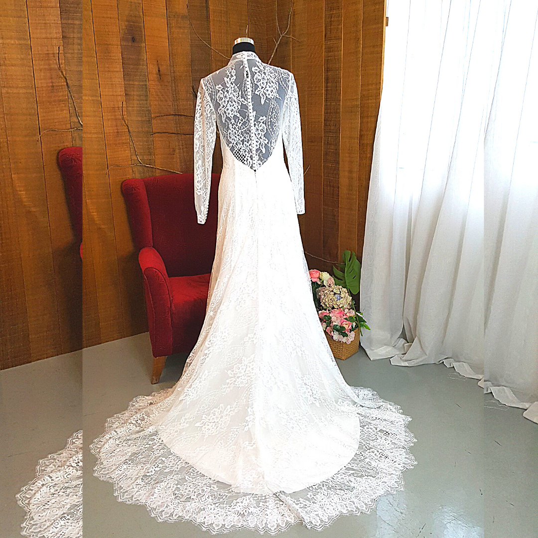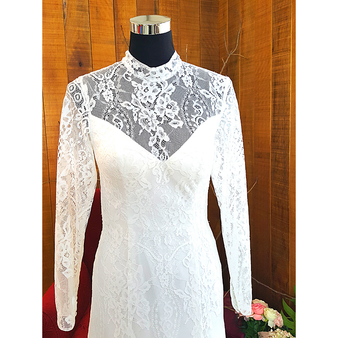 Long sleeves high collar neck Lace French Chantilly Baroque Lace Fit and Flare A line Garden Beach ROM Wedding Dress Rental Gaun Baju Pengantin Muslimah Kahwin Nikah Sanding Malaysia Kuala Lumpur Petaling Jaya