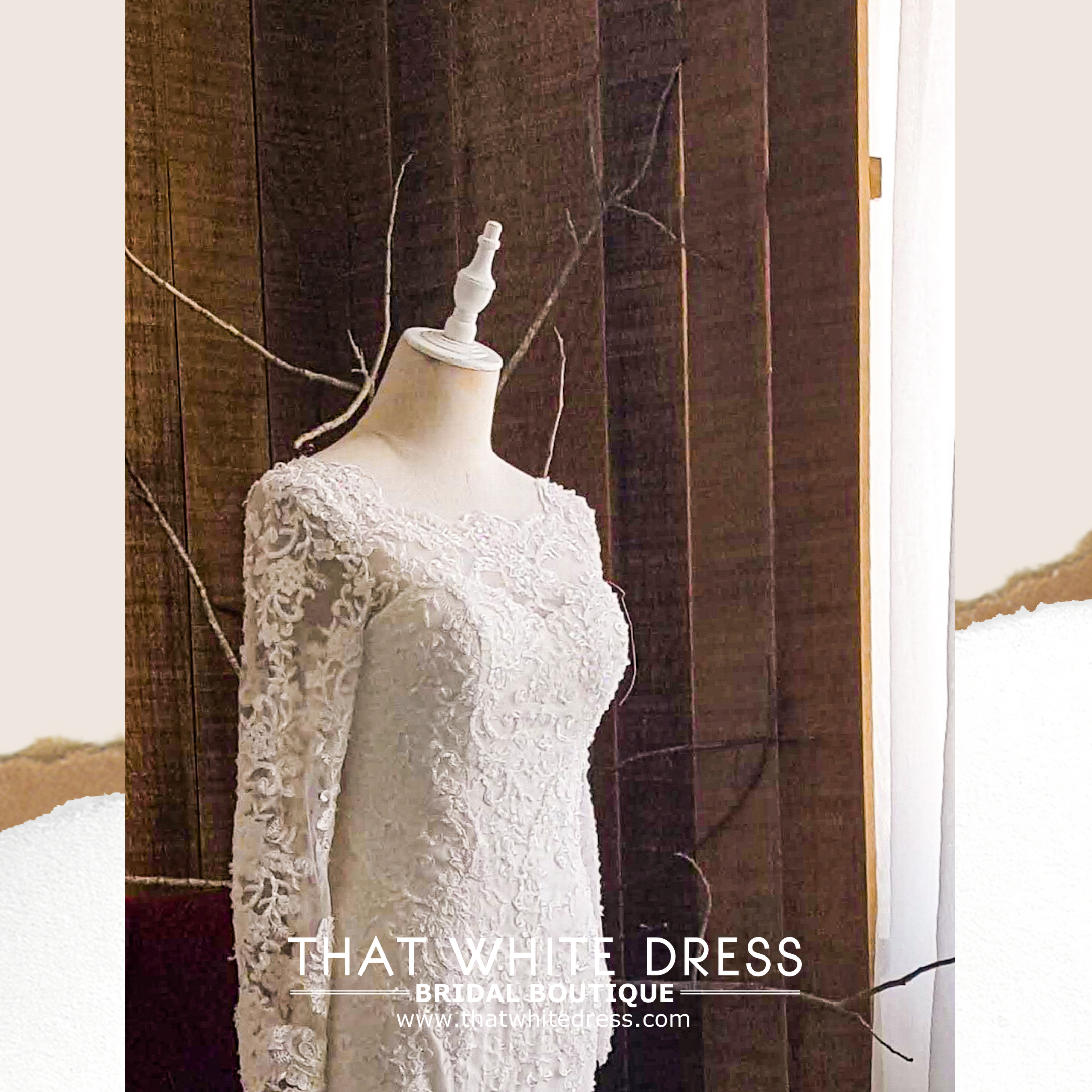 910LLW06 Carla Long sleeves boat neck trumpet Alencon a Bride Wedding Gown Premium Designer Malaysia rental